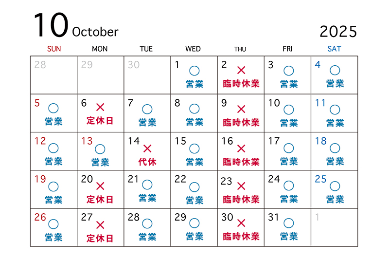 なお、10月13日の祝日(月曜日)は通常通り営業。