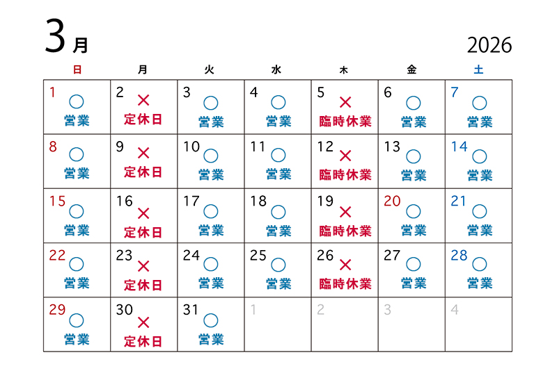 3月の営業日程ご案内 HOME お知らせ3月は下記の日程を臨時休業とさせて頂きます。3月5日 / 12日(木) / 19日(木) / 26日(木)3月の営業日程 宜しくお願い致します!! 2026.03.01 タグ:ご案内 (133) 『いいね!』&『フォロー』 頂けると嬉しいです!! Follow @TrattoriaVeritaPosted By シェフ